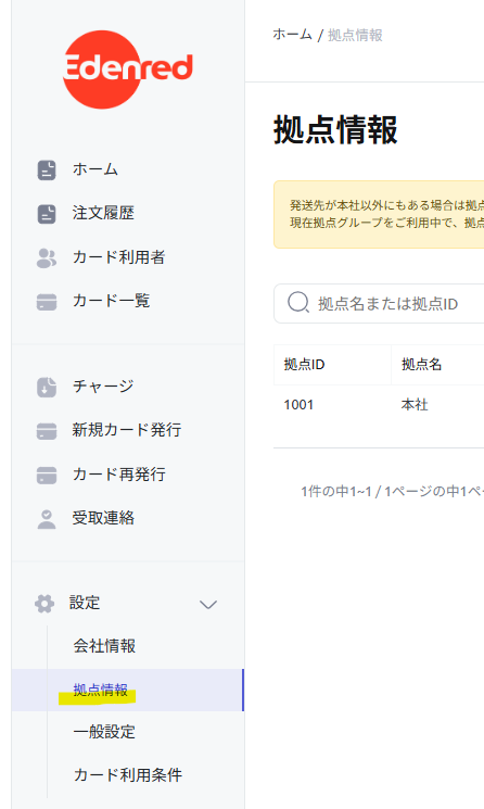 管理者ポータルサイト → 設定 → 拠点情報 より